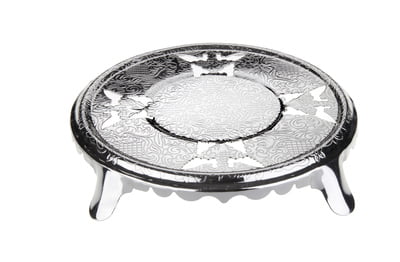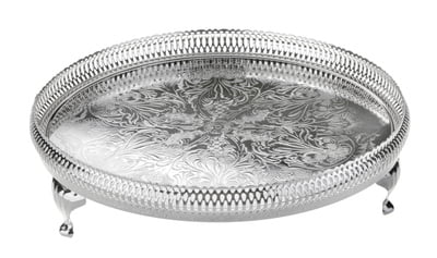 Queen Anne Small Chippendale Tray 7" dia x 1/2"h English Silver Plate (Tarnish Resistant). SKU #: 0/6182.