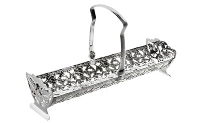 Queen Anne Miniature Napkin Holder 2"h x 5/8"w x 4"l English Silver Plate (Tarnish Resistant). SKU #: 0/6867.