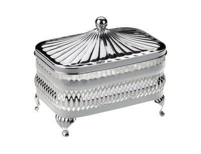 Single Casserole/Lid 6"h x 6"w x 12 1/2"l English Silver Plate (Tarnish Resistant). SKU #: Q0/6301.
