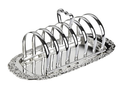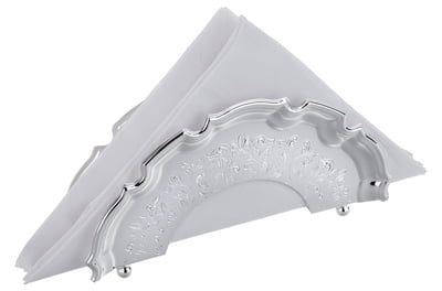 Queen Anne Serviette Holder 3 3/8" h x 1 1/8"w x 6 7/8l English Silver Plate (Tarnish Resistant). SKU #: 0/6865.