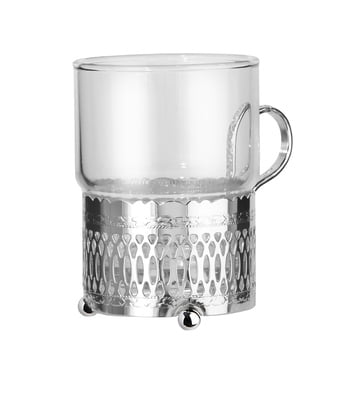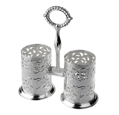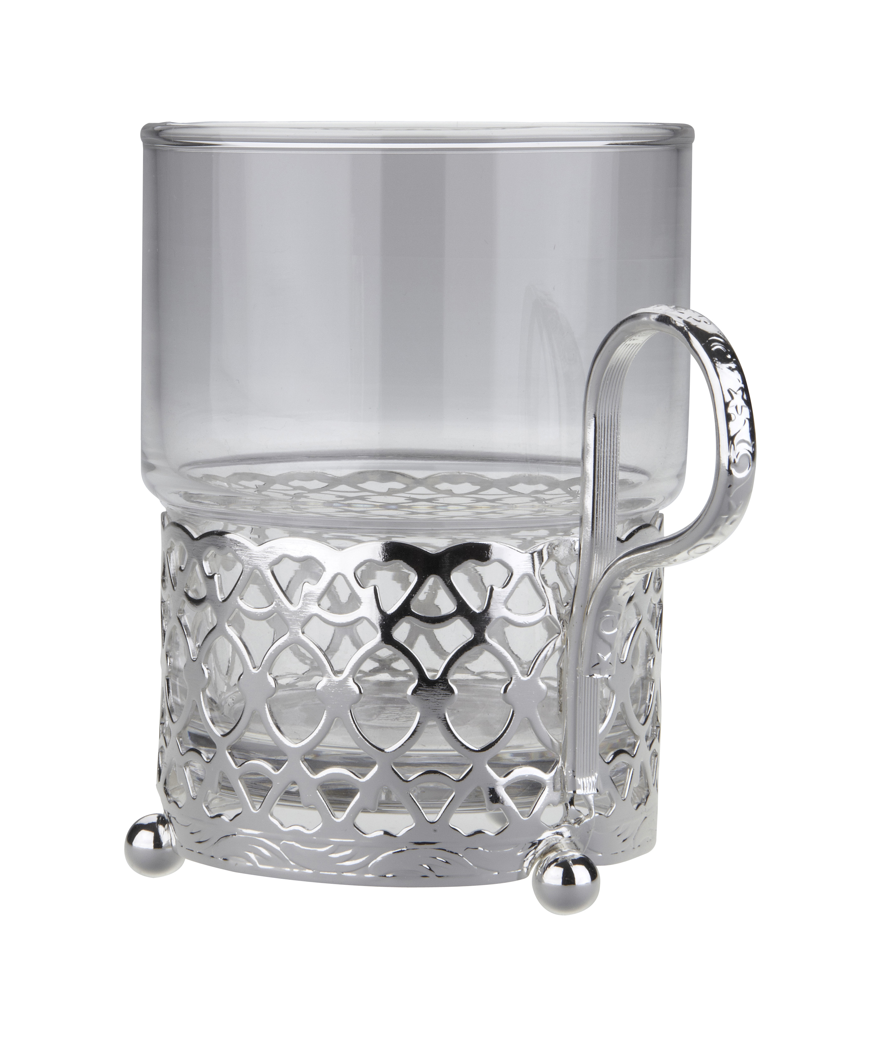 Single Tea Glass/Roman Strip 3 3/4"h x 2 3/4"w x 3 3/4"l English Silver Plate (Tarnish Resistant). SKU #: 0/6322/R.
