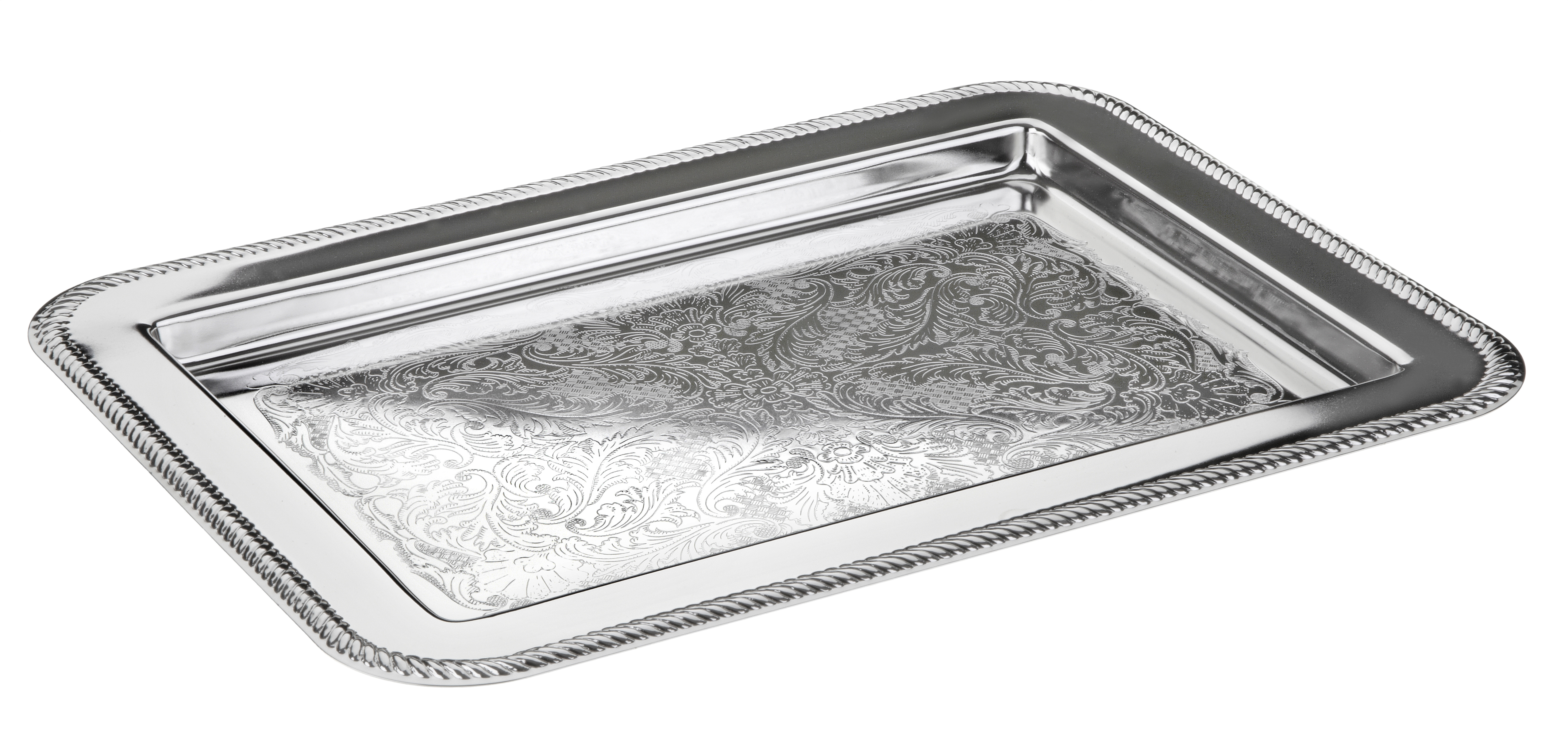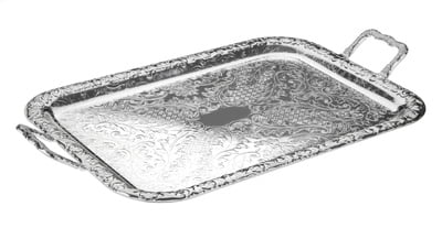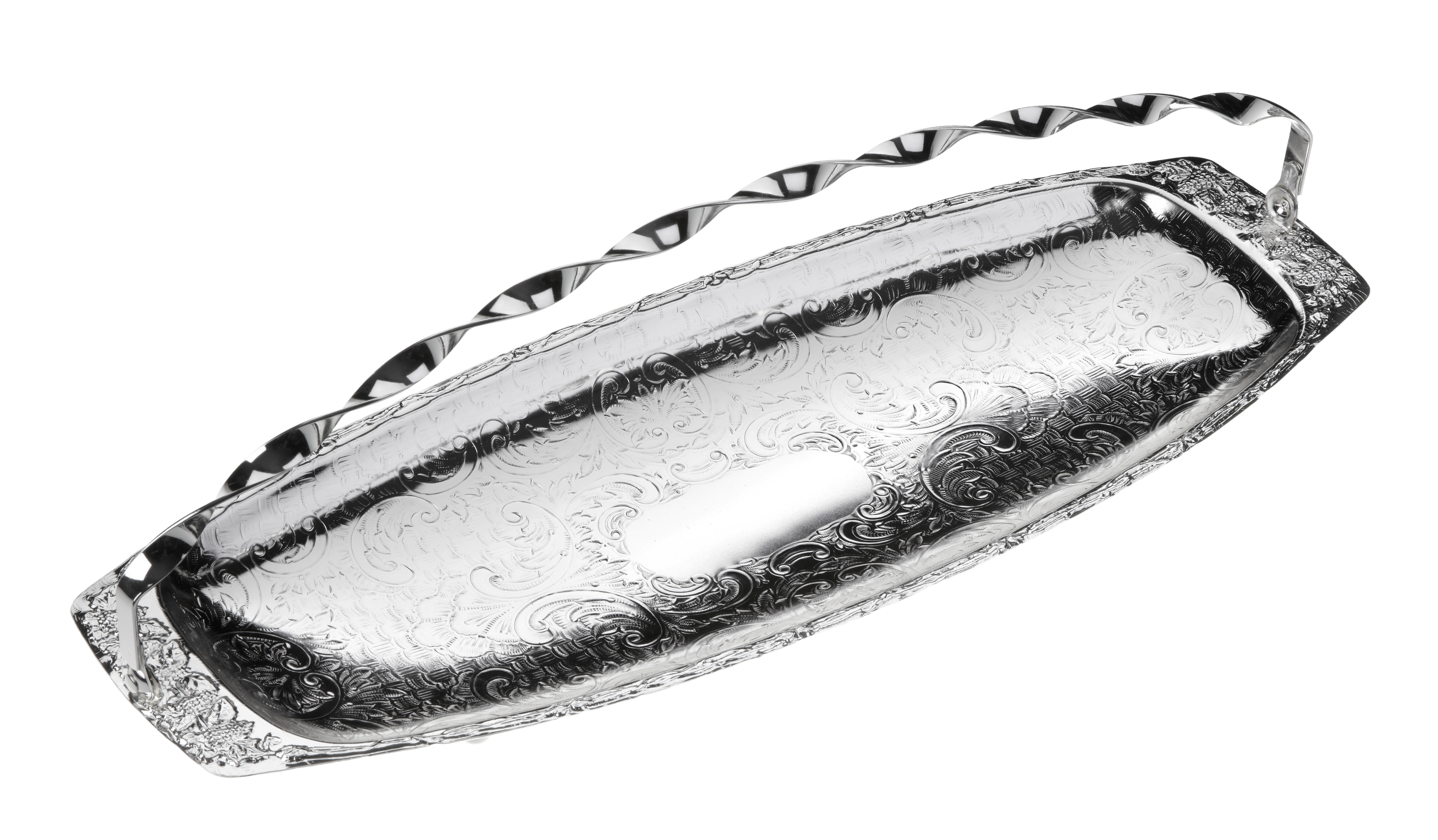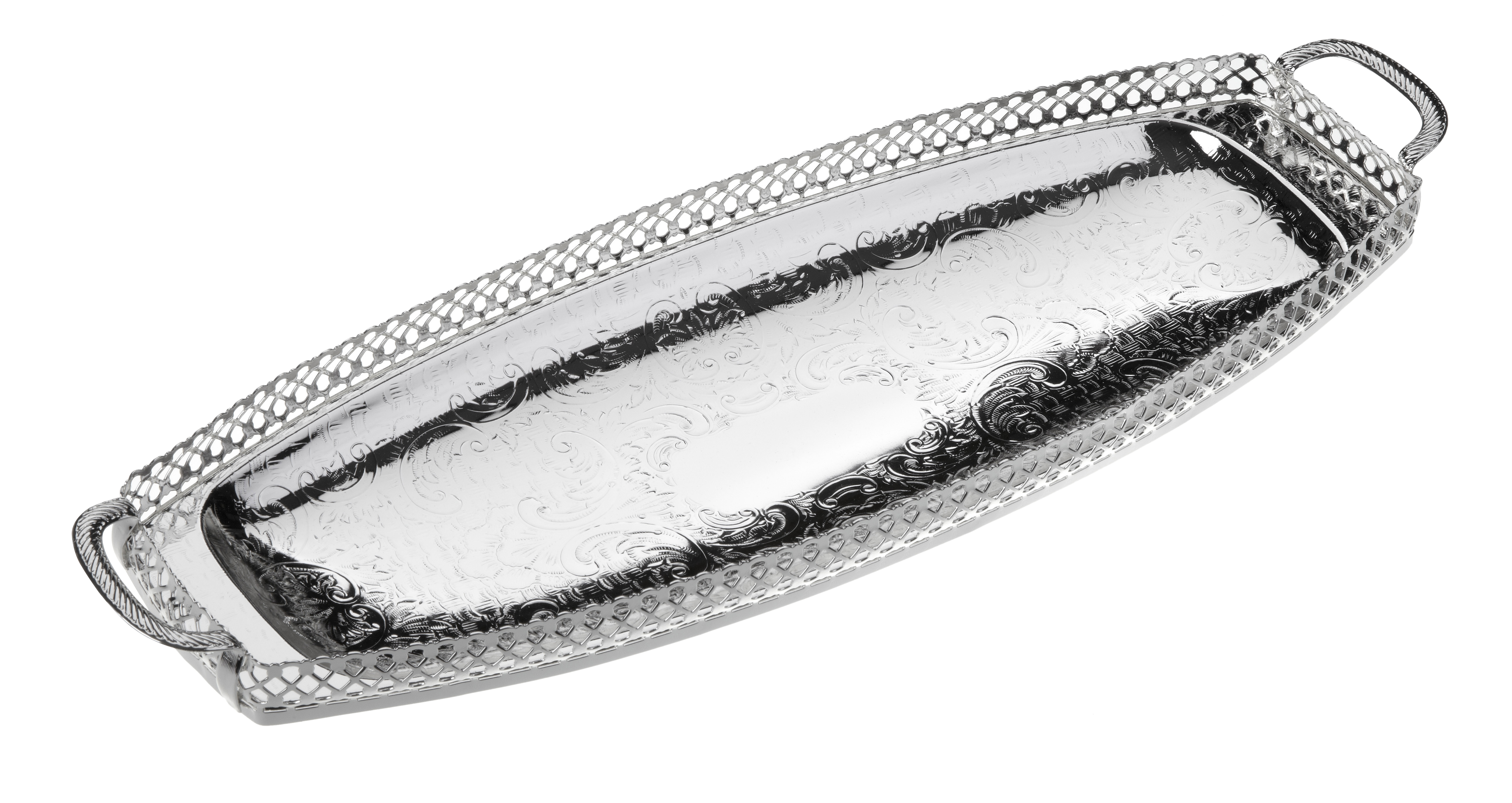 Queen Anne Oblong Tray Integral Handle 1"h x 11"w x 19 1/4"l English Silver Plate (Tarnish Resistant). SKU #: 0/6455.