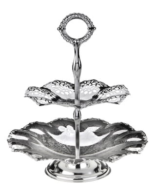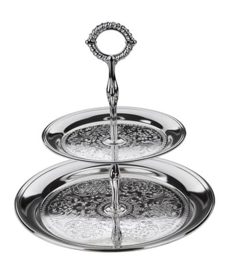 Queen Anne 2 Tier Wavy Edge Cake Stand 11 1/2" dia x 10 3/4"h English Silver Plate (Tarnish Resistant). SKU #: 0/6375.