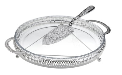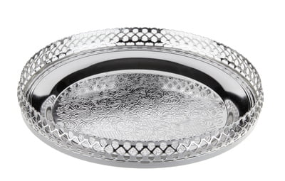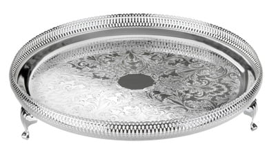 Queen Anne Round Gallery Tray 14"dia x 3"h English Silver Plate (Tarnish Resistant). SKU #: 0/6391.