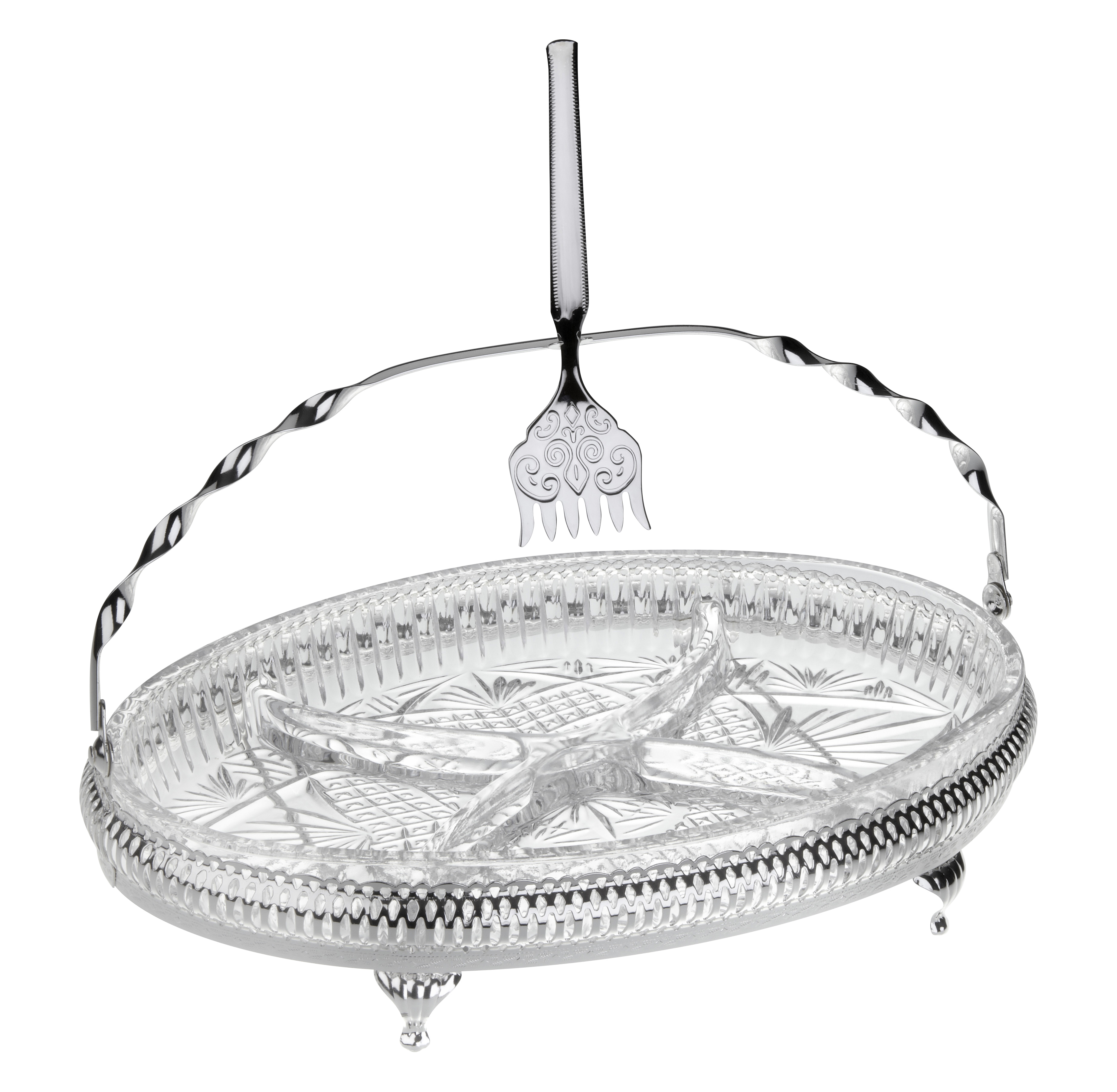 Queen Anne Oval Hors d'oeuvre/Fork 7"h x 7 7/8"w x 11 1/2"l English Silver Plate (Tarnish Resistant). SKU #: 0/6228.