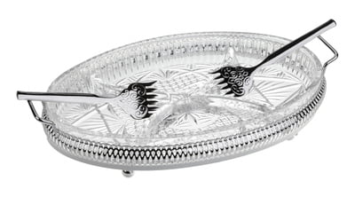 Queen Anne Oval Hors d'oeuvre/Side Handles/Forks 2 1/2"h x 7 7/8"w x 12 1/8"l English Silver Plate (Tarnish Resistant). SKU #: 0/6229.