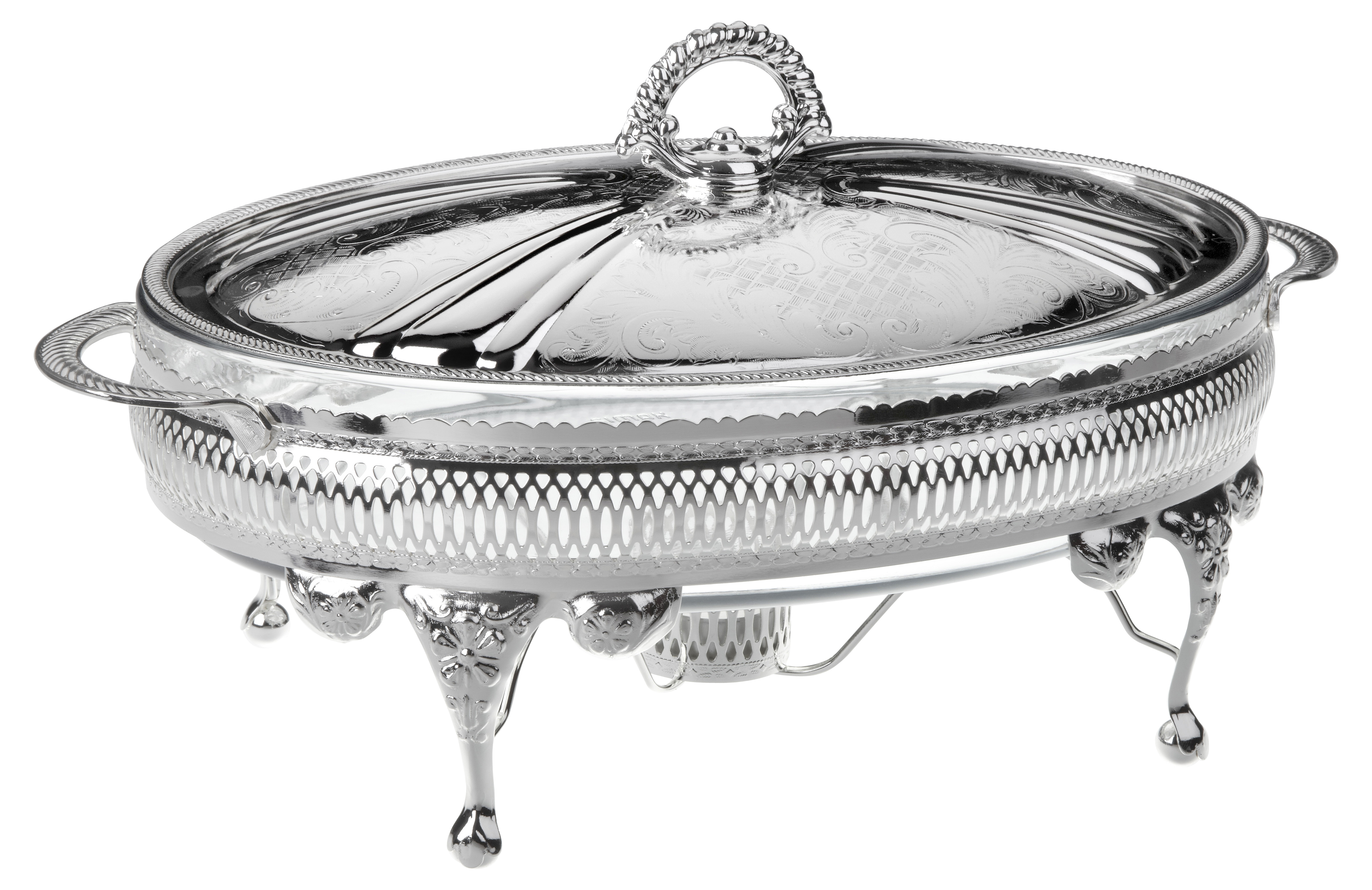 Queen Anne Large Oval Casserole Warmer 7 7/8"h x 10 1/2"w x 16"l English Silver Plate (Tarnish Resistant). SKU #: 0/6284.