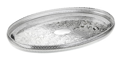 Queen Anne Oval Tray 15.25"long x 10"wide English Silver Plate (Tarnish Resistant). SKU #: 0/6331.
