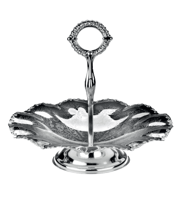 Queen Anne Bon Bon Dish/Swing Handle 4"h x 5 1/8"w x 9 1/2"l English Silver Plate (Tarnish Resistant). SKU #: 0/6096.