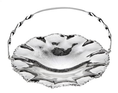 Queen Anne Gallery Bon Bon Dish/Swing Handle 5"h x 5 1/8"w x 9 1/2"l English Silver Plate (Tarnish Resistant). SKU #: 0/6097.