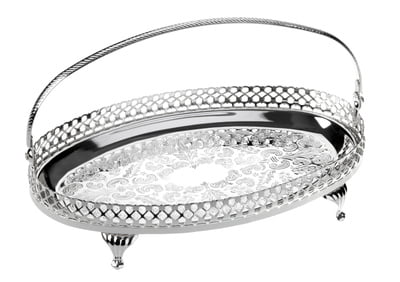Queen Anne Oval Gallery Tray with Handles/Legs 2 7/8"h x 10" w x 18 1/2"l English Silver Plate (Tarnish Resistant). SKU #: 0/6333.