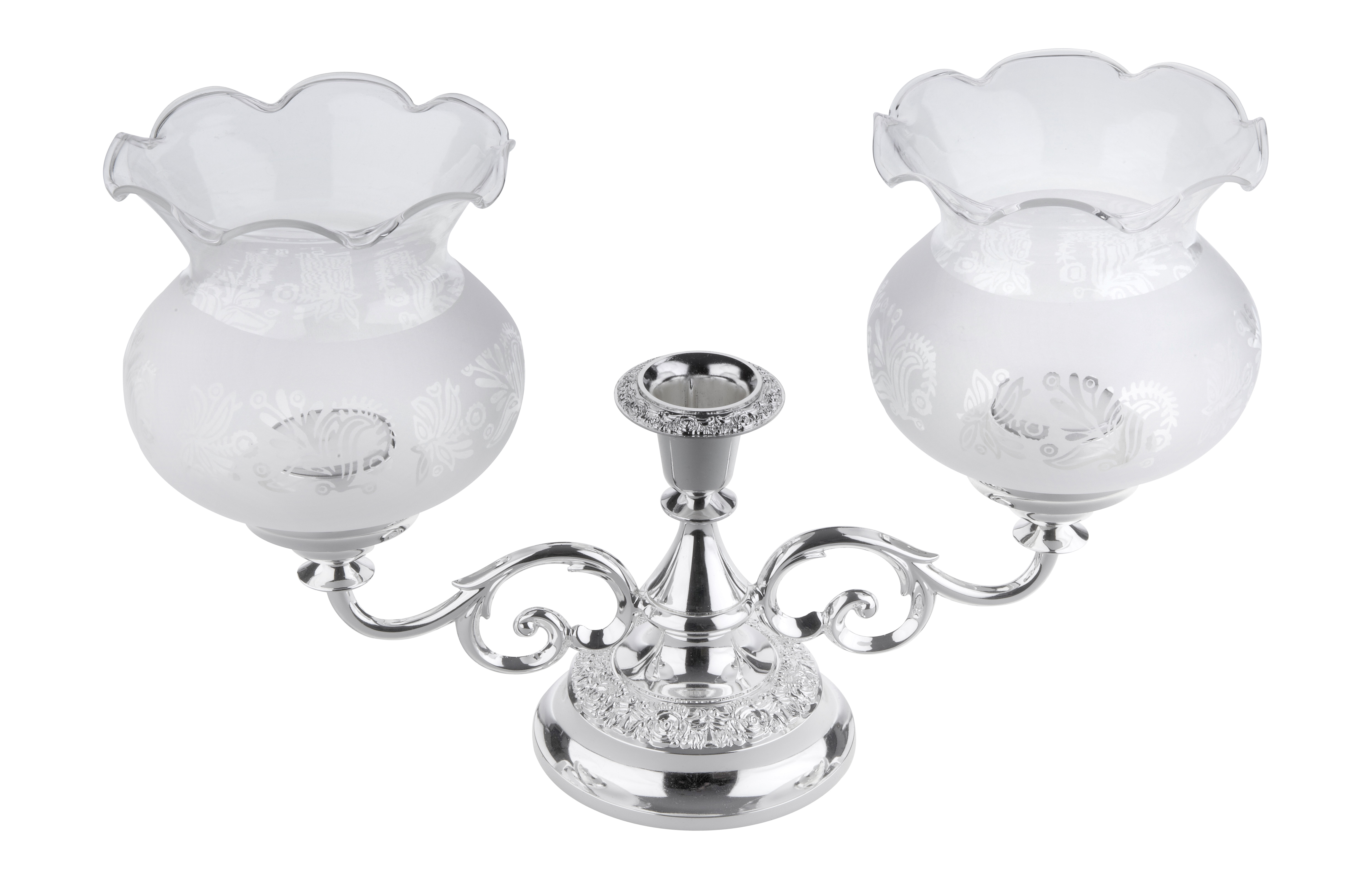 Double Candlelamp/Rose 8"h x 4 3/4"w x 13 1/2"l English Silver Plate (Tarnish Resistant). SKU #: 0/8200.