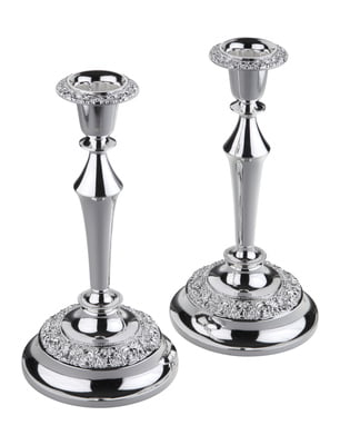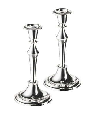 Queen Anne Pair Tall Candlesticks/Rose 4" dia x 8 1/4"h English Silver Plate (Tarnish Resistant). SKU #: 0/8202.