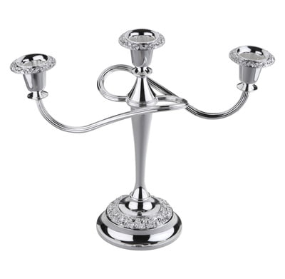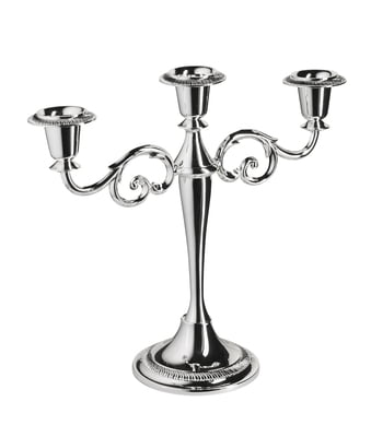 Queen Anne 3 Light Rose candelabra Scroll Arm 9 7/8" h x 4"w x 11 3/4"l English Silver Plate (Tarnish Resistant). SKU #: 0/8213.