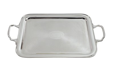 2 Handle 20.5" x 13" x 1" Engine Turned Tray English Silver Plate c.1950. SKU #: ANT2212.