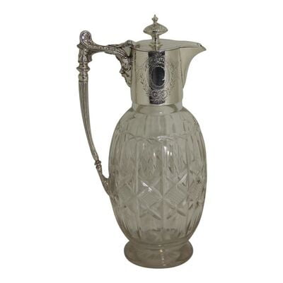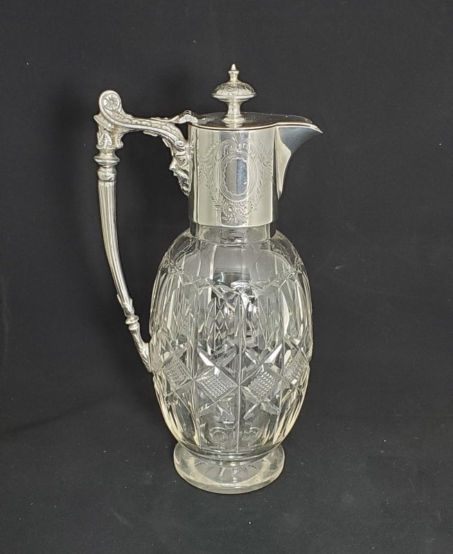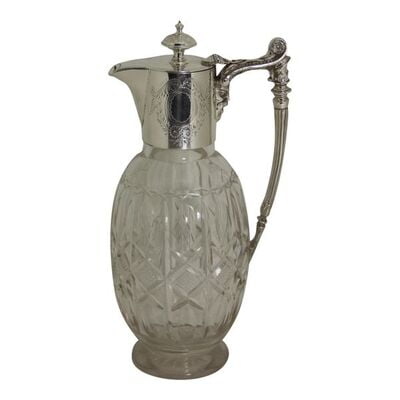 Claret jug Hand Engraved & Cut Glass with Elaborate handle c.1870