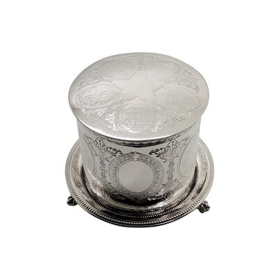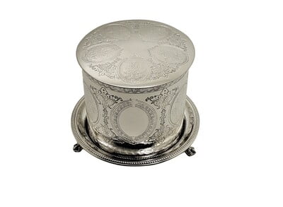 Biscuit Box Engraved English Silver Plate c.1870. SKU #: ANT2050.