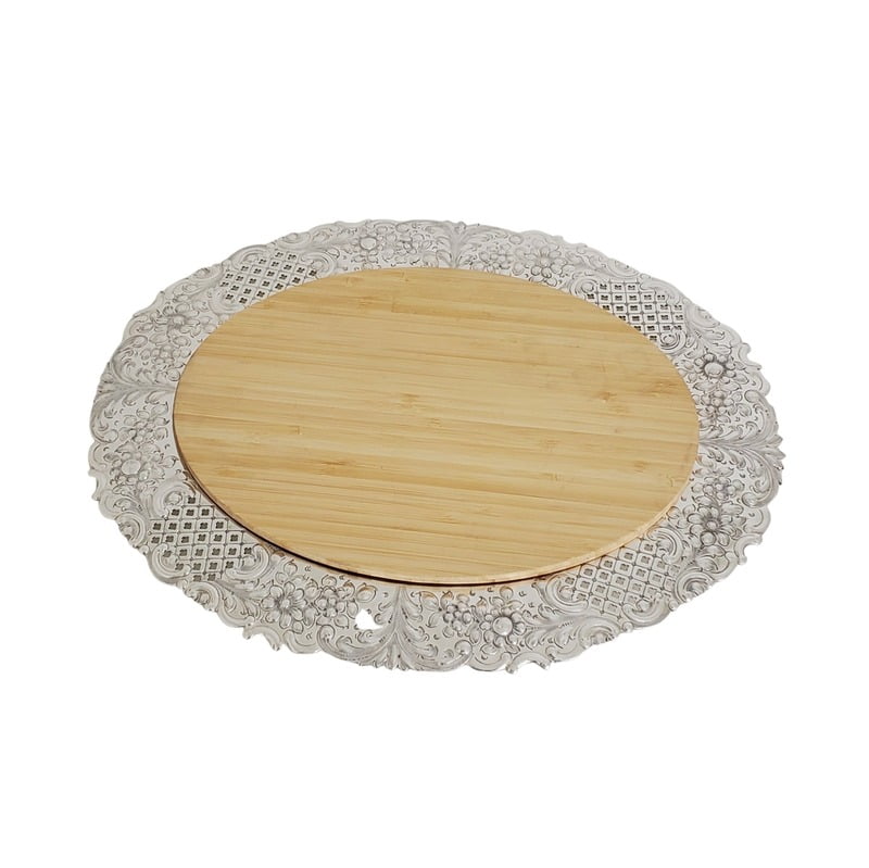 Bread Board Oval English Silver Plate c.1885 (New Wood)