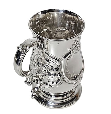 The Embossed X-Large Tankard you have is a remarkable piece of English silver plate from around 1880.