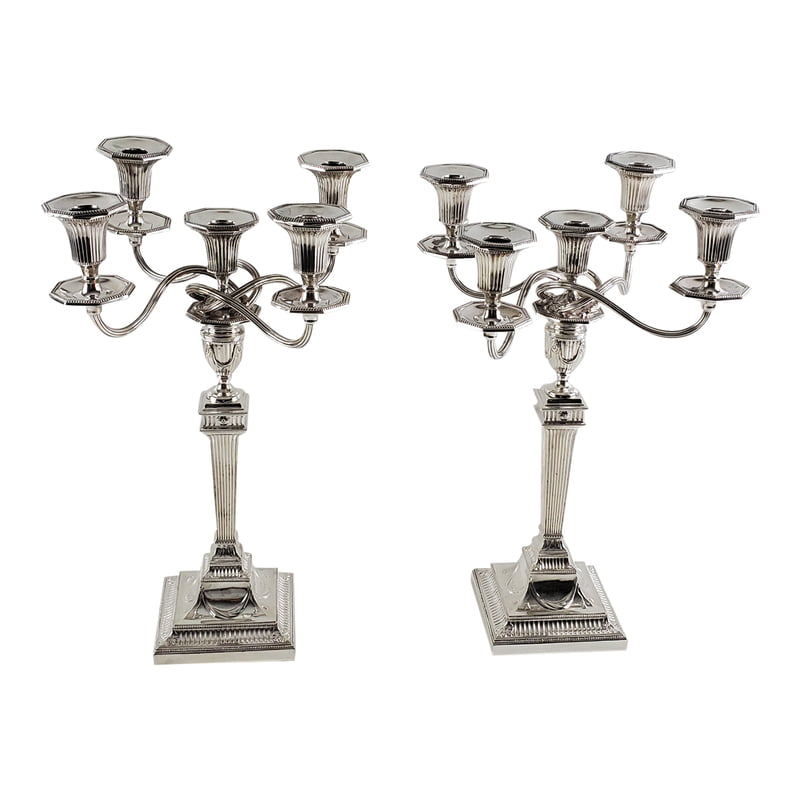 Pr 5 Lite Candelabra English Silver Plate c.1870