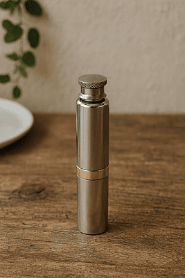 1oz Cigar-Shaped English Pewter Flask with Brass Center Band A compact masterpiece of British craftsmanship, this 1oz cigar-shaped flask is designed for discreet sophistication and timeless appeal. Its sleek silhouette and premium materials make it a distinguished companion for personal moments or refined gifting. Cigar-Inspired Design: The elongated cylindrical form mimics the classic cigar shape, offering a smooth, tactile experience and a nod to gentlemanly tradition. English Pewter Construction: Crafted from high-quality pewter with a polished finish, this flask delivers durability with a luxurious sheen. Brass Center Band: A warm-toned brass rim encircles the flask’s midsection, adding contrast and visual interest while enhancing grip. Secure Screw Cap: The knurled top ensures easy opening and secure closure, ideal for carrying a discreet sip of your favorite spirit. Gift-Ready Presentation: Elegantly boxed for effortless gifting — perfect for weddings, anniversaries, or collector sets. Pair this flask with leather accessories, tweed textures, or vintage barware for a lifestyle presentation that evokes heritage and understated luxury.This flask matches our cigar holder C1291