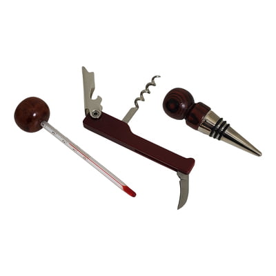 3-Rosewood Wine Set, Thermometer, Wine Stopper & Fold Out Corkscrew with Knife and Can Opener At...