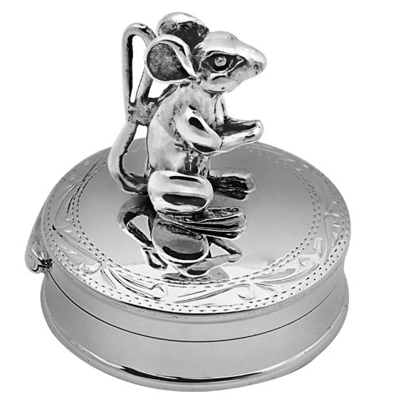 Our sterling silver mouse pill box has a great amount of detail on the mouse and features engraved detail round the edges of the pill box. Made from the highest quality sterling silver in Britain, this box makes a truly thoughtful gift for special occasions such as Christenings. Ideal for storing those first tooth or curl, our premium pill boxes are crafted with superb detail so that they can become the antiques of tomorrow – passed down through the family.