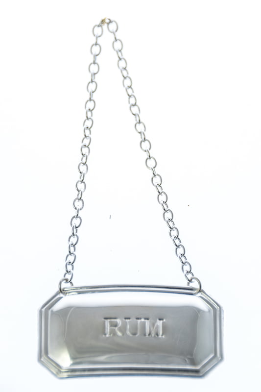 Decanter Label, Silver Plate, Cut Corner, Rum. SKU #: C1260RUM.