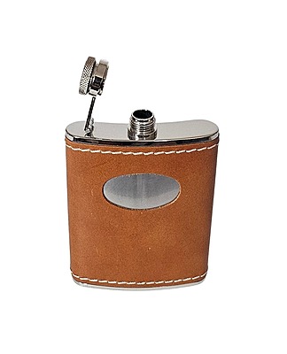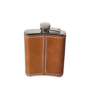 Hip Flask Captive Top Stitched Tan Leather/Stainless 6 oz. SKU #: KMST4.
