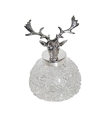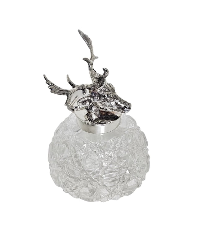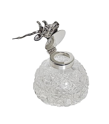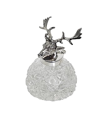 Round Cut Glass Inkwell With Stag Head Top English Silver Plate.SKU# ANT4000