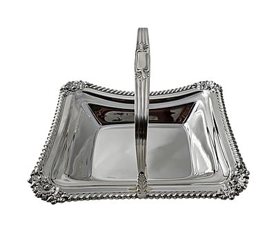 Basket Rectangular Plain Shell & Gadroon English Silver Plate c.1890