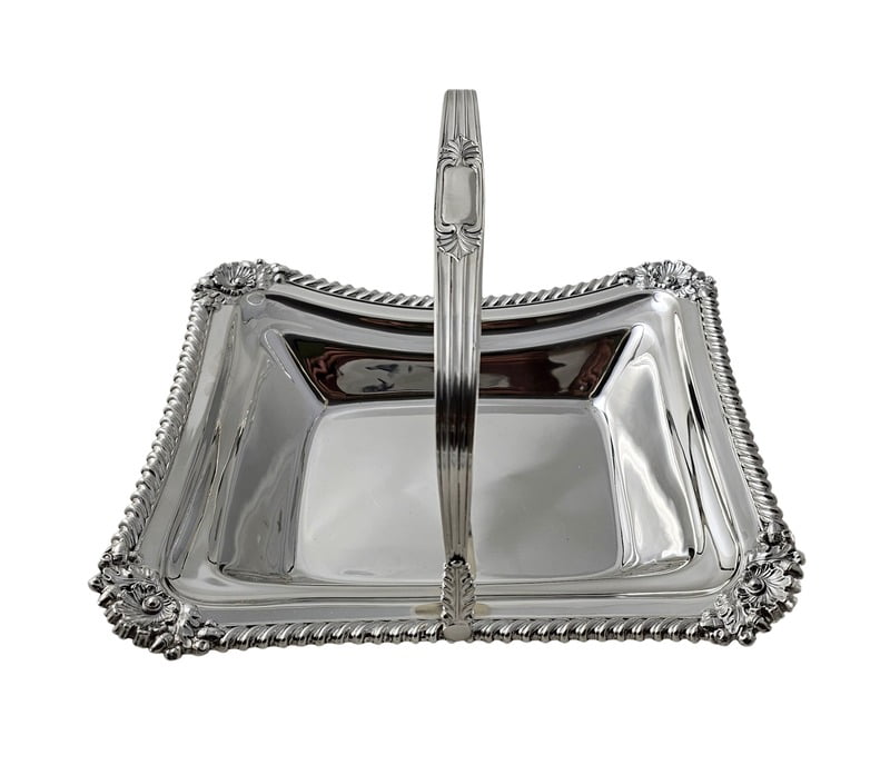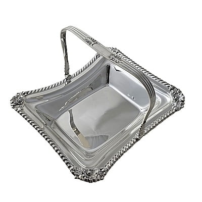 Basket Rectangular Plain Shell & Gadroon English Silver Plate c.1890. SKU #: ANT2636.