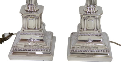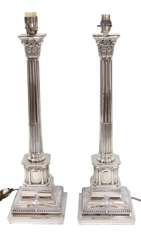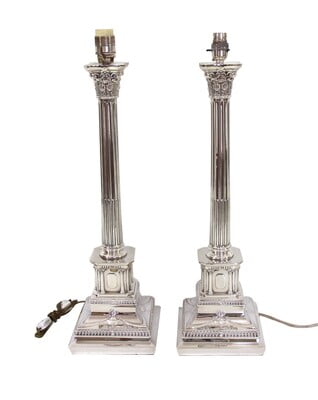 Pr 24" corinthian Lamps English Silver Plate C.1900