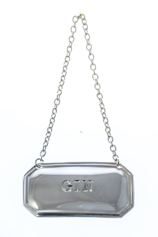 Decanter Label, Silver Plate, Cut Corner, Gin. SKU #: C1260GIN.