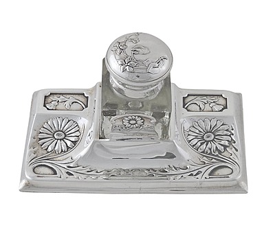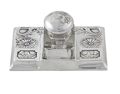 Inkstand Art Nouveau Design Silver Plate. SKU #: C353.