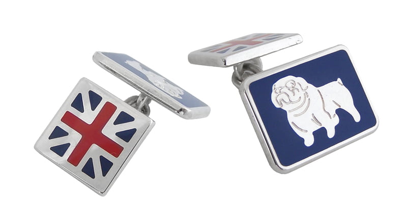 Cufflinks Enamel British Bulldog & Union Jack Link Design English.. Sterling Silver