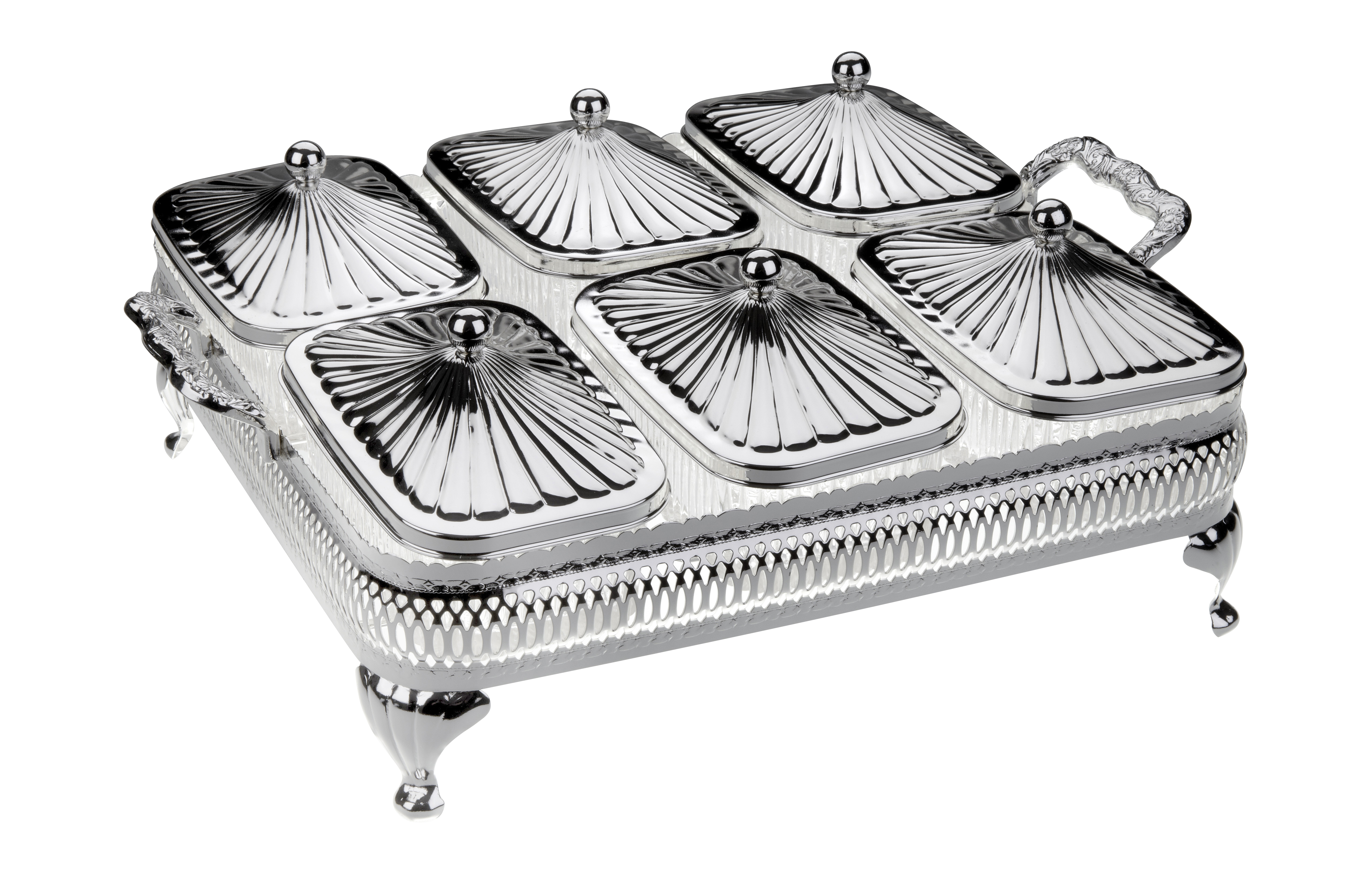 Queen Anne 6 Pce Oblong Party Set. English Silver Plate (Tarnish Resistant). SKU #: 0/4926.