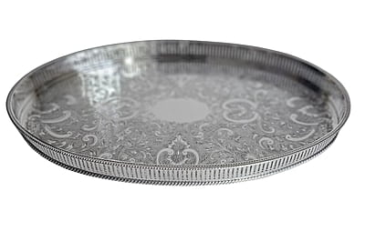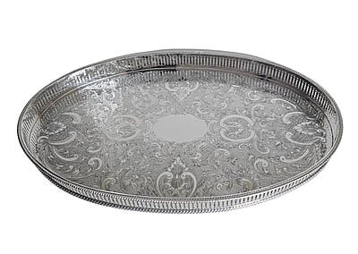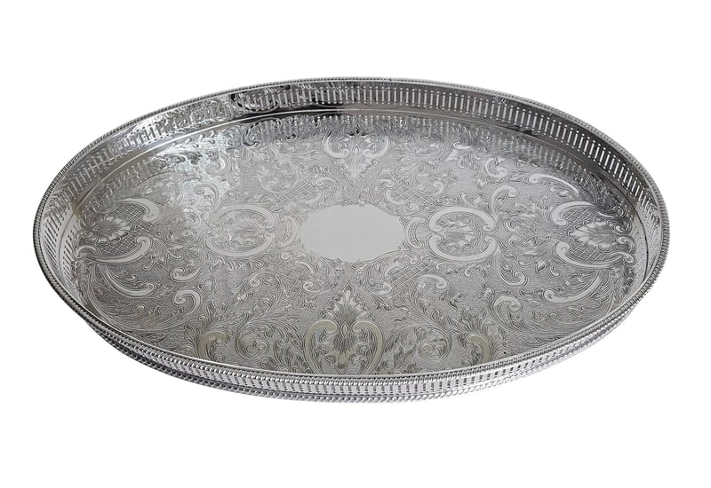 Gallery Tray Oval Bar Pierced Engraved 16" x 10" x 1.5" English Silver Plate c.1900