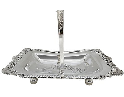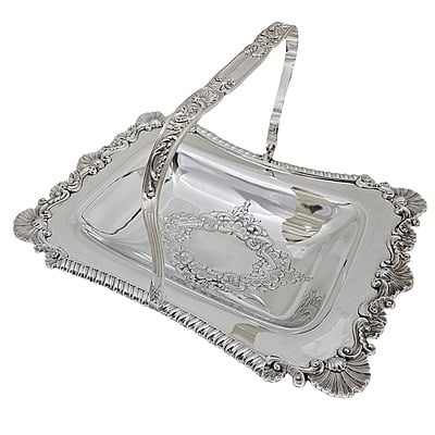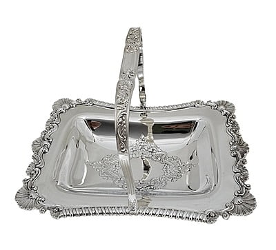 Basket Rectangular Shell & Gadroon Border Ball Feet English Silver Plate c.1885. SKU #: ANT2833.