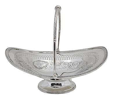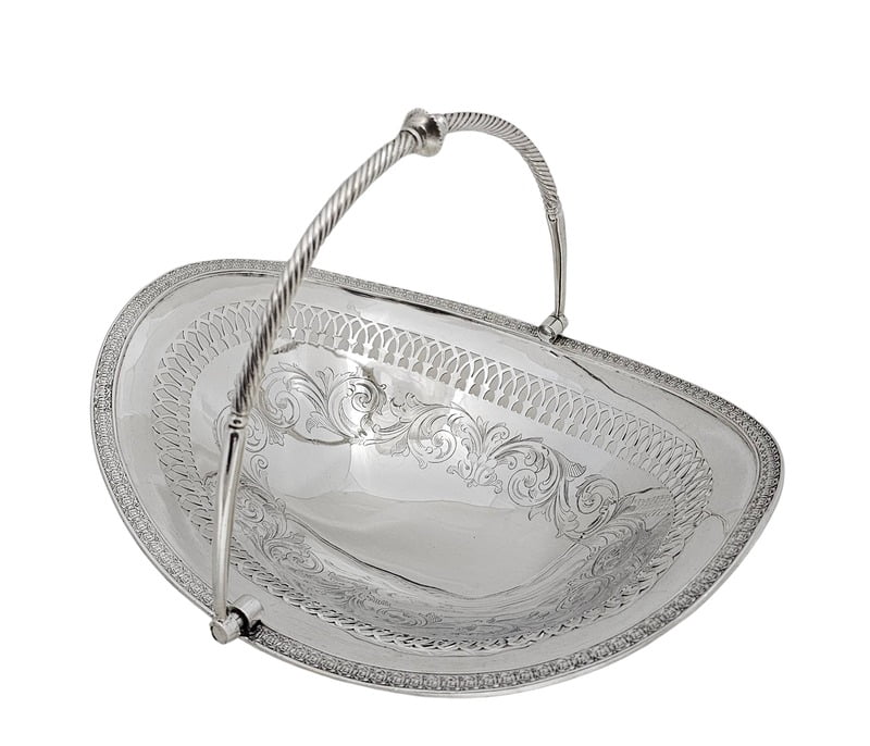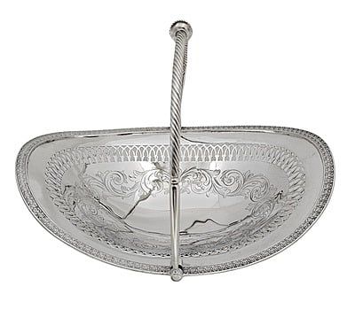 Basket Oval Engraved & Pierced English Silver Plate c.1870. SKU #: ANT2632.