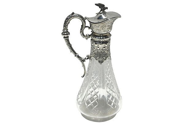 Sterling/Cut Glass Claret Jug c.1885
