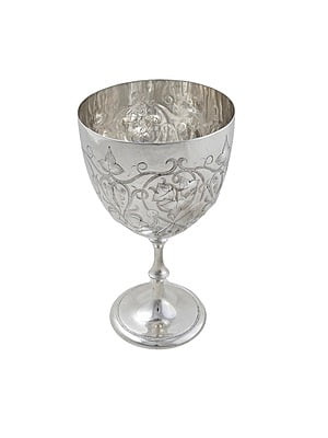 Goblet Embossed With Cartouche (7.25"h ) English Silver Plate c.1875