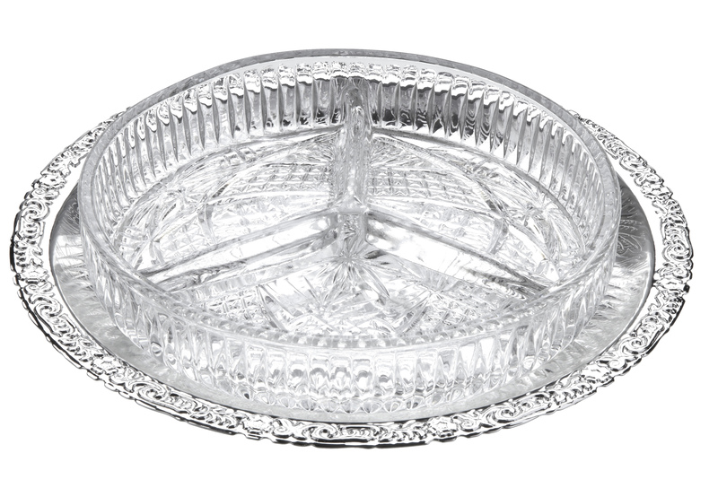 3 Div Hors d'oeuvre on Tray 9 3/8"dia x 1 5/8"h English Silver Plate (Tarnish Resistant). SKU #: 0/6207/2.