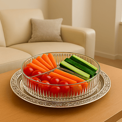 3 Div Hors d'oeuvre on Tray 9 3/8"dia x 1 5/8"h English Silver Plate (Tarnish Resistant) |