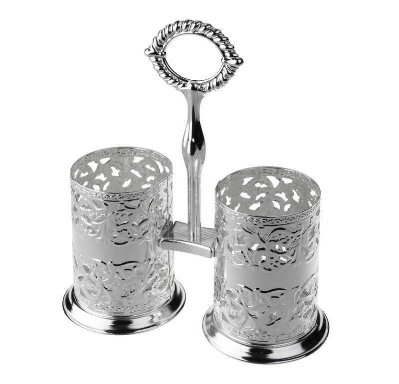 Queen Anne Double Cutlery Holder 8 1/4"h x 3"w x 6 7/8"l English Silver Plate (Tarnish Resistant). SKU #: 0/5966.