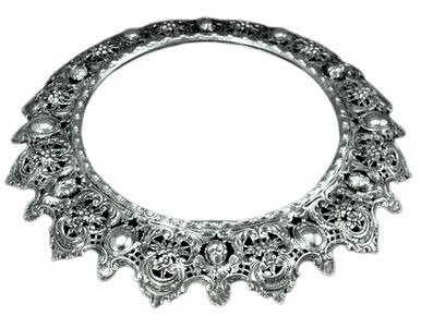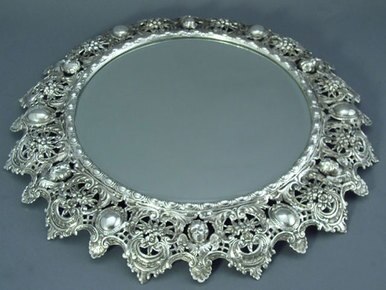 Mirror Plateau Round Cherub Design Silver Plate. SKU #: PL120.