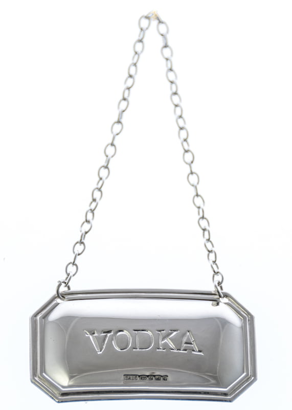 VODKA Cut Corner Hallmarked Silver Decanter Label..