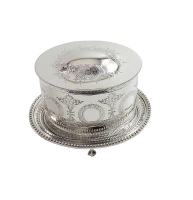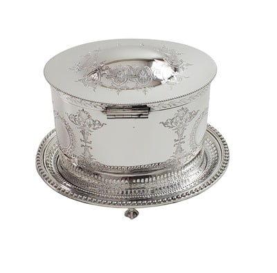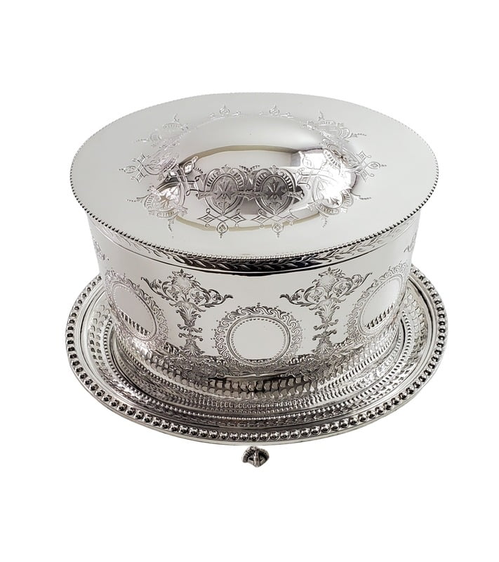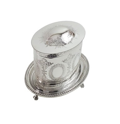 Biscuit Box Oval Engraved English Silver Plate c. 1870