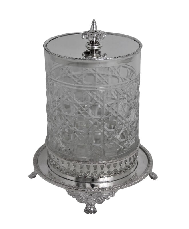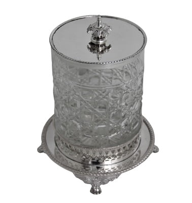 English Hobnail Glass /Silver Plate Cookie Jar c.1900