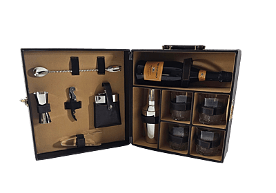 Leather Picnic & Silver Plate Bar Companion Set.COMING IN DECEMBER. Sku: C1965